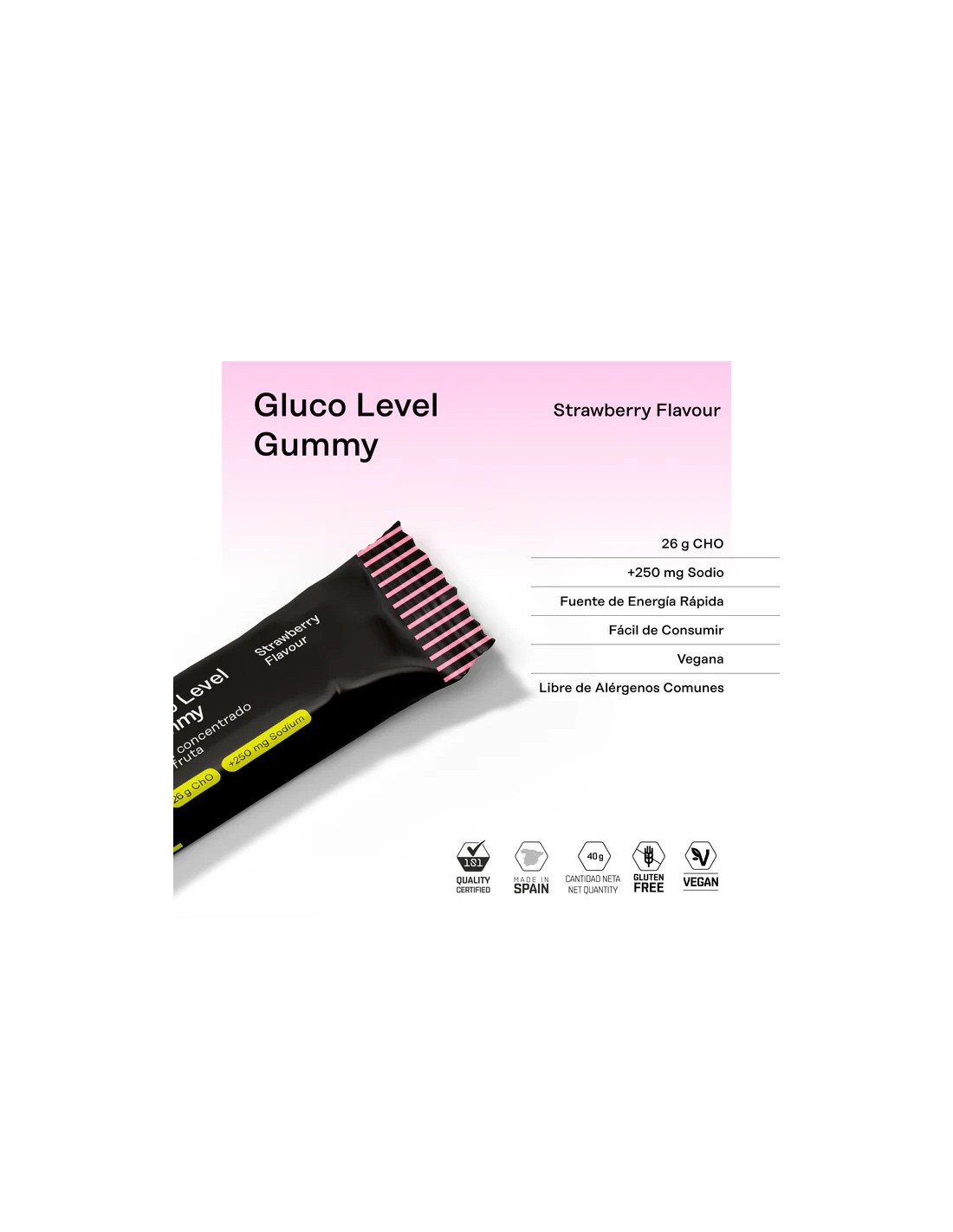 Las GLUCO LEVEL GUMMY son unas barritas energéticas de pasta de fruta con textura gelatinosa, muy fáciles de tomar y formuladas con 26 gramos de carbohidratos de alta calidad y de rápida absorción para recargar tu energía al instante.