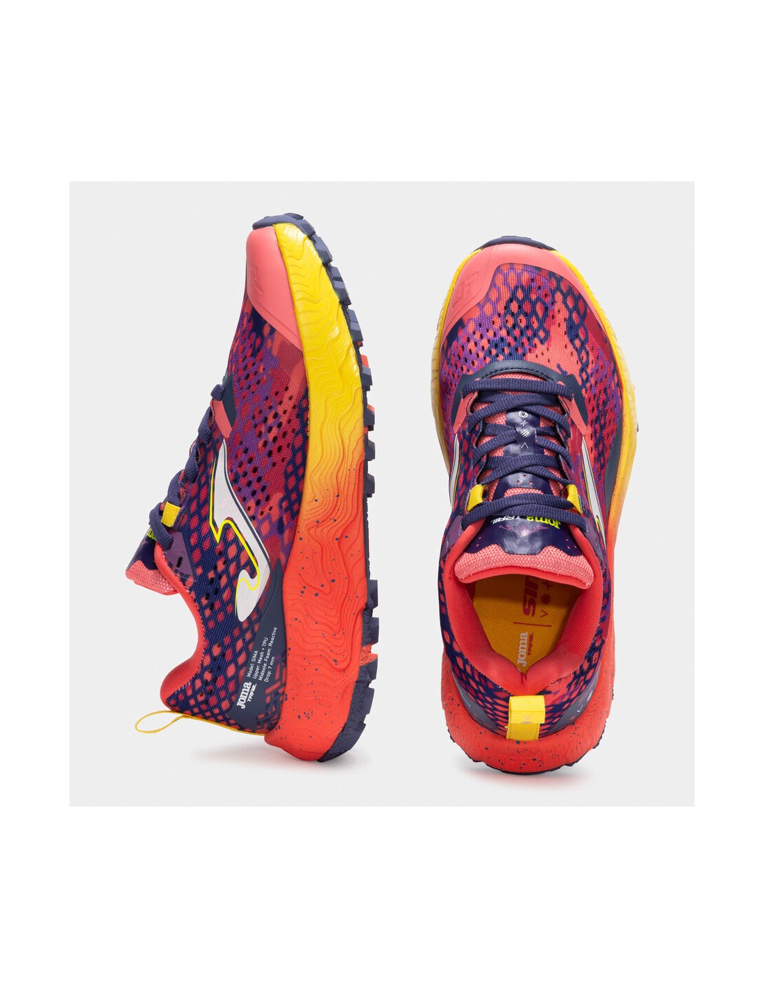 Zapatillas de trail para mujer. El mítico modelo mixto para trail continúa como uno de los más rápidos y ligeros de Joma dentro de su categoría. Altas prestaciones en confort y amortiguación de los impactos gracias a la incorporación de tecnología de vanguardia
